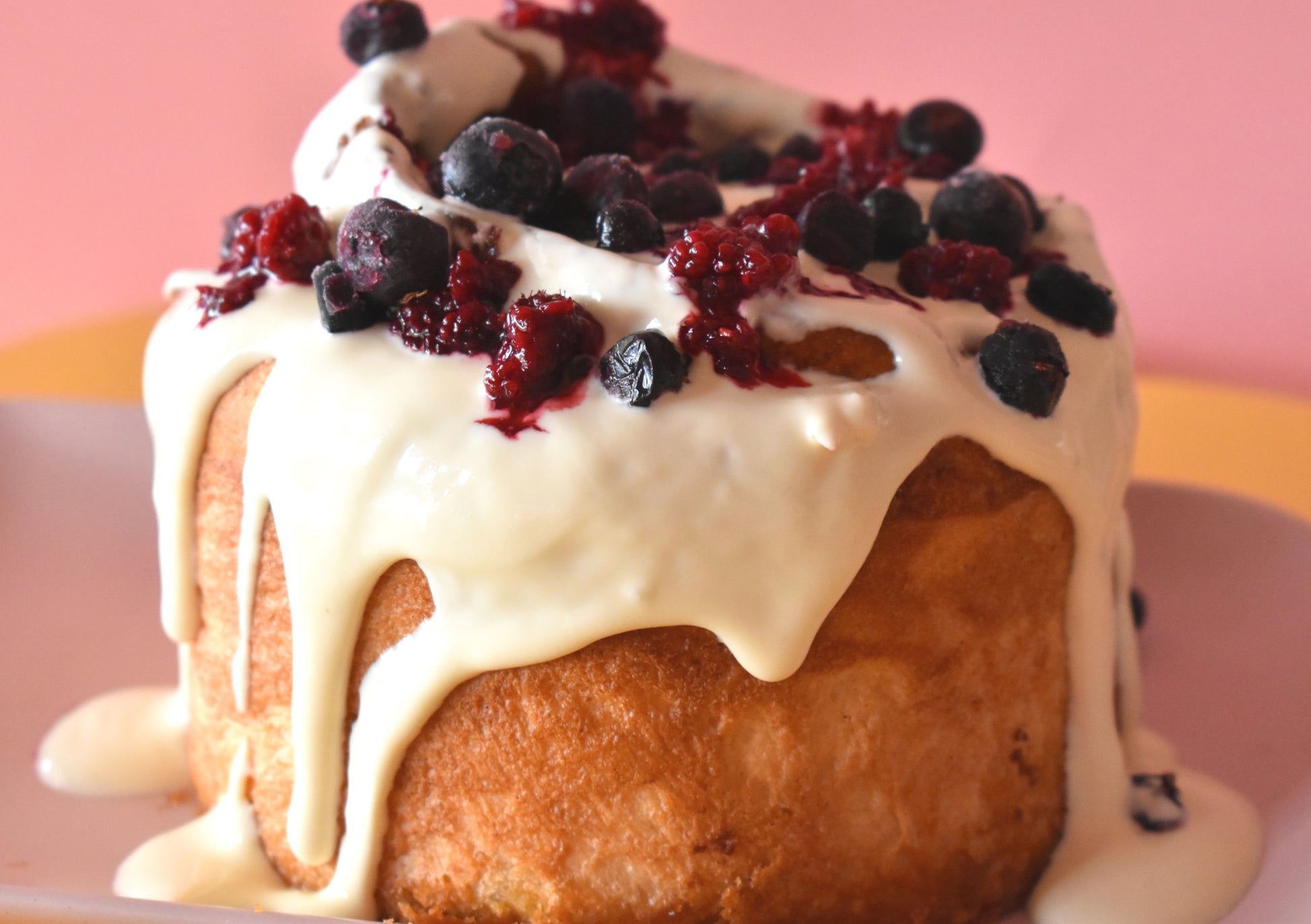 Una mezcla deliciosa de fresas, frambuesas y arándanos convierte este Megarollo en una experiencia frutal y distinta. Su interior queda jugoso y se equilibra con el dulzor del glaseado, creando un contraste fresco y encantador. Cada bocado sorprende y enamora.